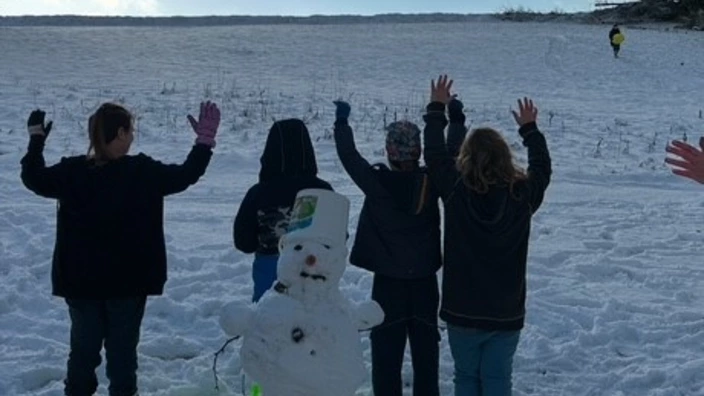 Klirrende Kälte, Sonnenschein und dicker Schnee forderten die Kinder auf, mit Tellerschlitten die verschneite Piste hinunterzusausen. Im Anschluss wurde in gemeinsamer Teamarbeit ein Schneemann gebaut – ausgestattet mit einer Karottennase, einem charmanten Eimerhut und Kohlensteinen als Verzierung für das Mantelkleid.