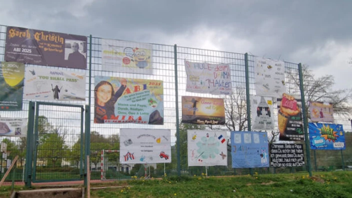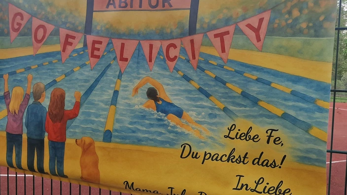 Ein besonderes Zeichen der Unterstützung zeigt sich wieder rund um unseren Roten Platz: Dort hängen die liebevoll gestalteten Abiplakate, mit denen Familien und Freunde ihre persönliche Motivation und ihren Stolz ausdrücken. Diese Tradition ist jedes Jahr aufs Neue ein echtes Highlight – vielen Dank an alle, die mit so viel Kreativität und Herzblut dabei sind!